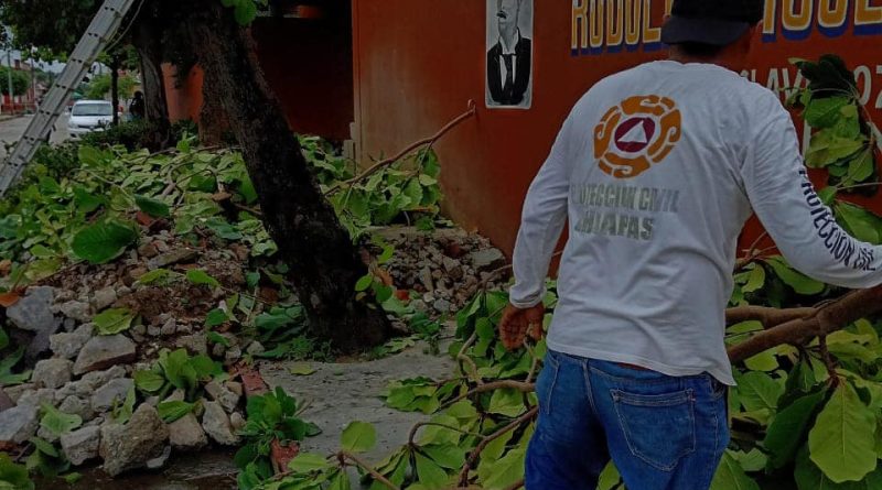 Un foco de riesgo era la zona del barrio San Martín, en la zona cercana a la Escuela Primaria Dr Rodolfo Figueroa Esquinca, realizando la poda con la que el área del cableado quedó debidamente despejada en su totalidad.