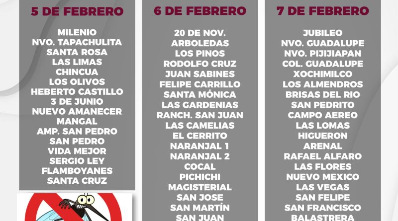 Cronograma de actividades de eliminación de criaderos en los barrios de la cabecera municipal.