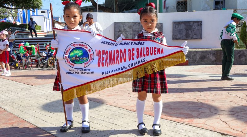 Los alumnos y alumnas del kínder Bernardo del Balbuena conmemoraron el Día de la Bandera con un increíble desfile.