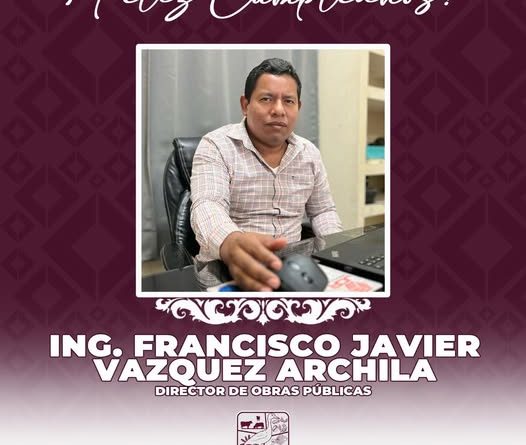 Desde este espacio felicitamos cariñosamente por un año mas de vida al compañero y amigo Ing. Francisco Javier Vázquez Archila, quien funge como Director de Obras Públicas de este H. Ayuntamiento de Pijijiapan.