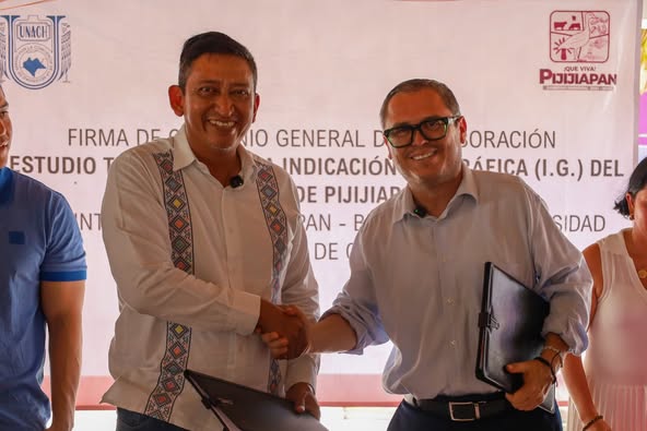 El H. Ayuntamiento de Pijijiapan 2024 – 2027 que preside el Ing. Carlos Alberto Albores Lima en coordinación con la Dirección de Desarrollo Social y Económico, a cargo del Biol. Jose Mario Ramón Pérez, firma el convenio de colaboración general con la Benemérita Universidad Autónoma de Chiapas (UNACH) representada por el Dr. Oswaldo Chacón Rojas, Rector de la misma, en el ejido La Esperanza Zapotal, con la finalidad de realizar el estudio Técnico para la Indicación Geográfica (IG) del quesillo de Pijijiapan, con lo que se busca darle reconocimiento y realce a nuestro producto Pijijiapaneco.