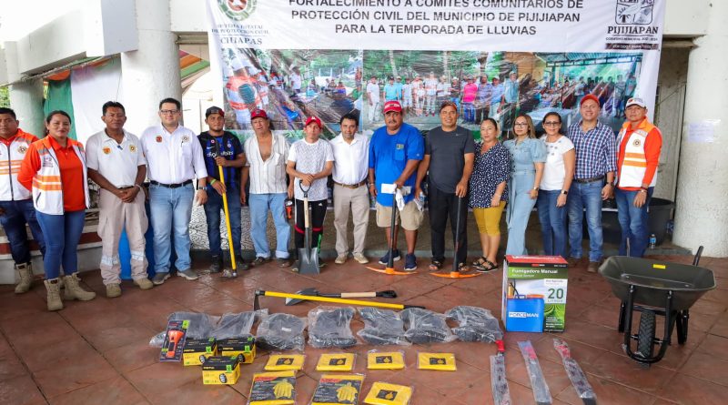 Es por eso que se fortalecen los Comités de Protección Civil Chiapas, en el marco del Programa Preventivo PP5 y demás, equipando con kits a los 16 comités existentes en Pijijiapan.