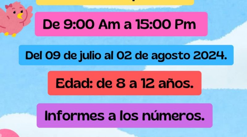 Te esperamos a que disfrutemos estas vacaciones de verano con nuestros maestros donde nos enseñarán diferentes talleres.