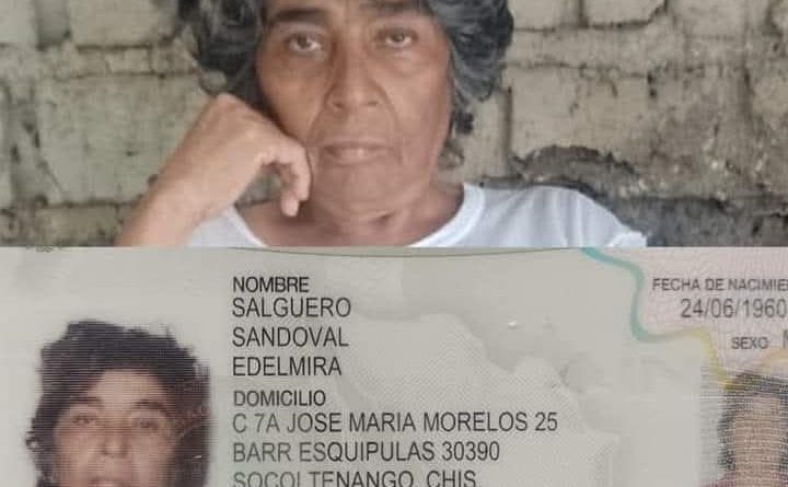 El DIF Municipal de Socoltenango, en coordinación con el DIF Pijijiapan, pide su apoyo para localizar a la familia de Edelmira Salguero Sandoval, quien se encuentra refugiada en las instalaciones del DIF Municipal de Socoltenango.